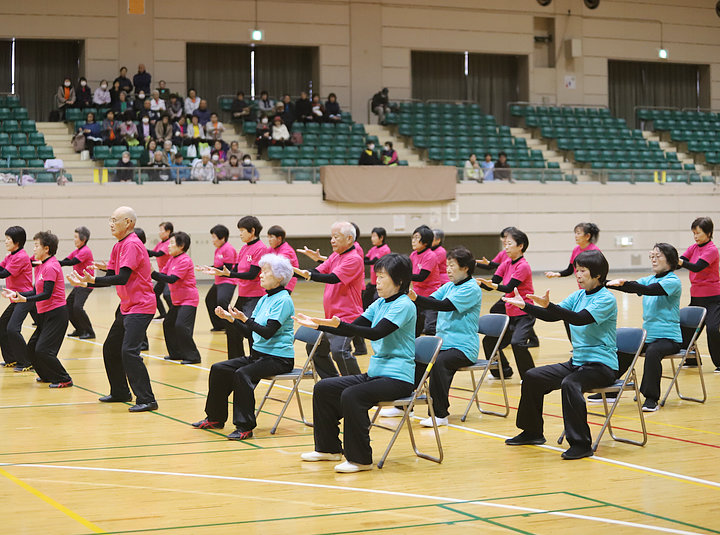 40代から90代まで、それぞれの年代、体調に合わせて体を動かしています。ツボのマッサージにより気血の流れを良くし、体調を整えていきます。
