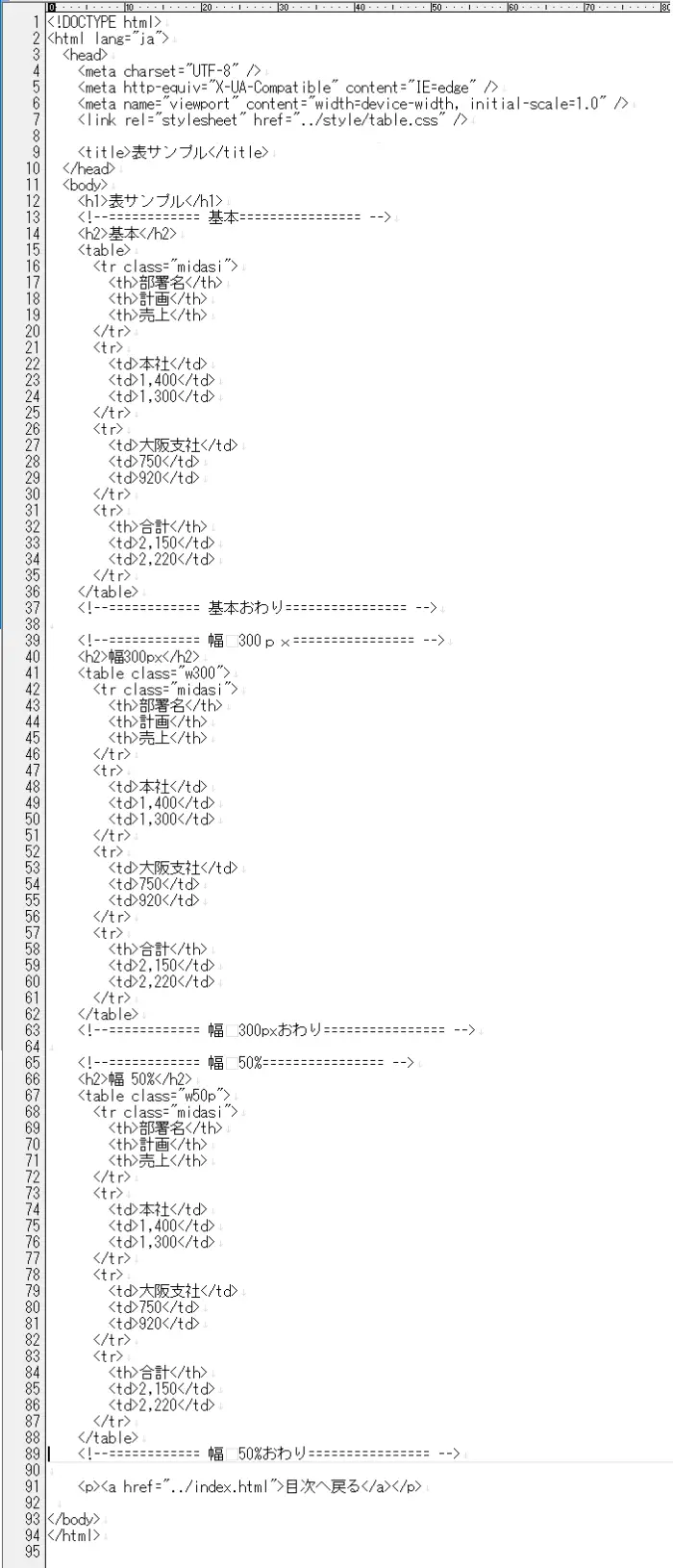 下記テーブルサンプルページを作成し、ファイル名「table.html」として「tex」フォルダーに保存した。