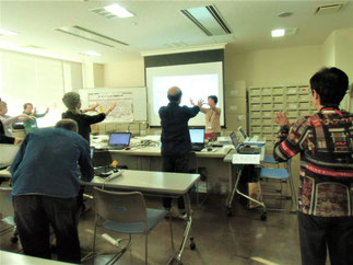 講師 本間長子さん、アシスタント:羽根弘恵さん、体操指導:浜谷登美子さん