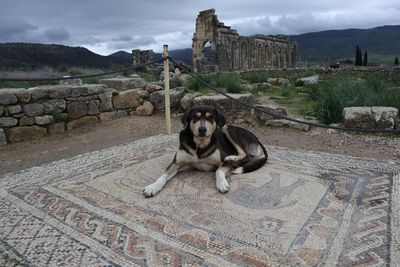 ヴォルビリス遺跡に着いて見学を始めると犬がついてきて離れません。ガイド犬と案内の人が言っていましたが本当に最後までついてきました。そこは遺跡の大切なタイルがあるんだけどなあ(^^;)