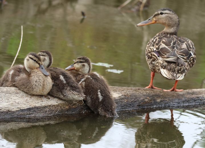 鴨の親子がのんびり