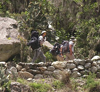 この都市に入るにはインカの道と呼ばれる山道をたどってくるのですが、この道は急傾斜の登山道や恐ろしい断崖絶壁を通ることもあり、大切な商売や情報の伝達を行う者にはたいへんきびしい環境だったと思います。一部インカの道を歩いてみました。