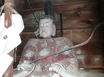 八幡(やわた)宿には八幡(はちまん)神社があります。立派な社(やしろ)に武者像が飾られていました。武士の信仰が厚かった神社だったそうです。