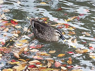18日22:30発の夜行バスで盛岡に。高松公園までバスで行き準備をして出発です。公園は紅葉が始まっており落ち葉の浮く中を鴨が浮いています。