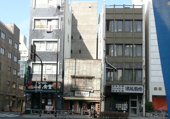 細いビルに挟まれきゅうくつそうな小さな書店