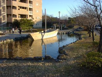 日が傾きかけたころ名古屋市側の七里の渡し場に着きました。渡し船のモニュメントもあり、こんな小さな舟で海を越えて行くなんて、本当に危険な事だったんだと分かりました。