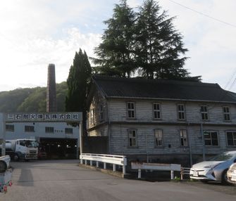 三石宿は耐火レンガの工場が道の両側にあり、レンガ造りの煙突も少し古い建物も風情がありました。