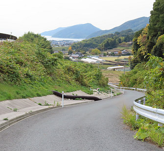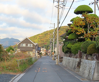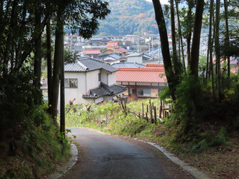 川から離れると道は山を越えていきます。短い距離ですが急に人の気配がなくなりイノシシなどの心配が出てきます。森の中を抜けて人家が見えてくるとほっとします。(^_^;)