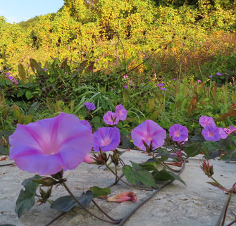 30分ほどで山が近く見えるようになりました。12月というのにこの日は暖かく1時間も歩くとシャツ一枚でも大丈夫な陽気です。道の斜面には野朝顔が元気よく咲いていました。