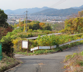 富海宿を出ると県道58号線と山陽道が接するあたりに旧山陽道橘坂(たちばなさか)の案内板があります。ここからしばらく山道となります。鈴の用意をしました。