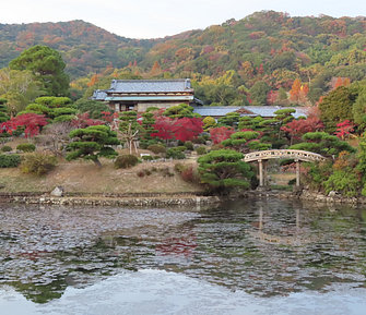 山陽道はその国府の真ん中を通っていきます。突き当たりのあたりに毛利氏庭園があったので遅い時間でしたが寄ってみました。