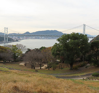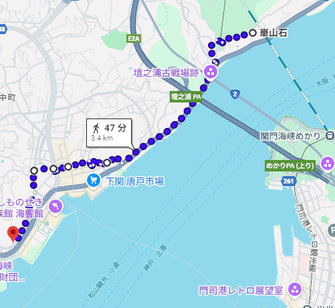 8時過ぎに宿を出ました。急ぐ気持ちにはなれずゆっくりと歩き始めました。昨日宿泊した新下関で入った喫茶店のママが、昔行った下関の火の山公園から見る海峡はとても良かったと話してくれたので今日はその展望台へ行ってみようと思っていました。ところが公園再整備のためロープウェイも展望台も利用できません。急な坂を登る途中で景色を見ました。冬なので花なども見ることができず残念でした。