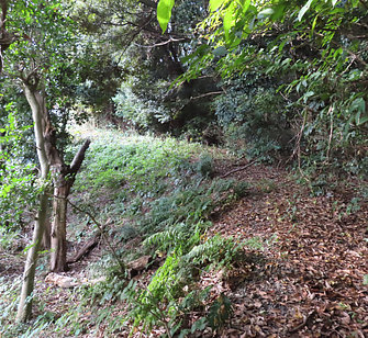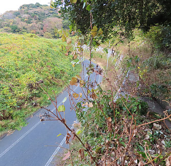 山陽道に戻ります。道はいったん下って再度上り直す道です。地図では途中から右手の藪に入るようになっています。暗い人があまり歩いていない道になりました。
