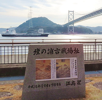 9号線に出てみるとそこは壇ノ浦の戦いが行われた古戦場でした。当時は橋などありませんし、源平戦は小舟で行われました。あの早い潮流の中では船は流され下に回った方が不利でした。義経ははじめ不利な戦いをしていましたが、潮の流れが変わると大勝をおさめ平家は敗れ滅びました。歴史的な地でした。