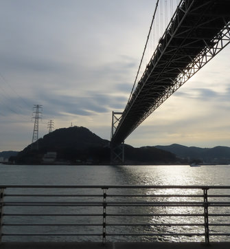 西国街道、最後の旅立ちの朝が来ました。ベランダに出て海峡を見ると西から東に潮が流れています。関門橋をくぐってくる船は船足が速く、東から来る船は見た目に分かるくらいゆっくりです。これが関門海峡の潮流なのですね。