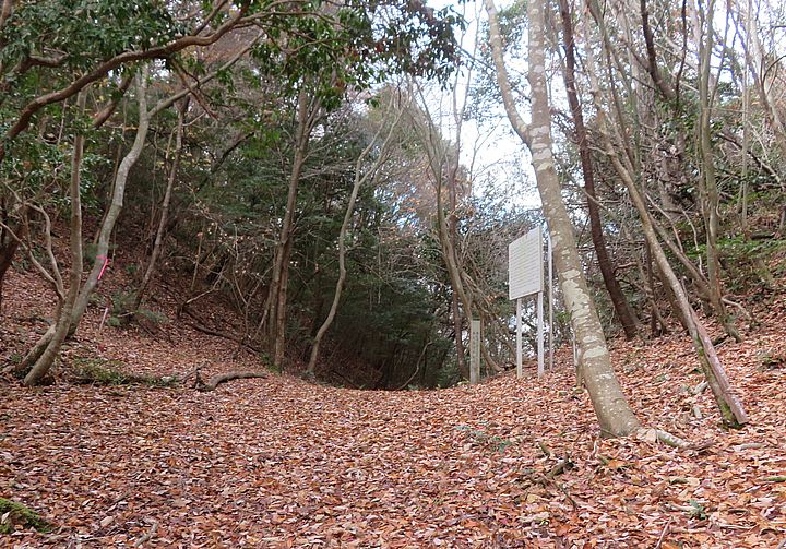 住宅が途切れ飢坂(かつえざか)案内板があります